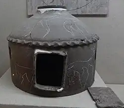 Abaoji, posthumously Emperor Taizu of Liao, was born in 872 to the Yila chieftain, Saladi. By the time of Abaoji, the Yila had become the largest and strongest of the Khitan tribes, even though the Yaonian khans still held overall power.[47] The Yila tribe was descended from the Yishihuo, who settled closer to Han civilization than other Khitans. In the 730s, the Yila became a tribe independent of the Yaonian. Under the influence of Han culture, Yundeshi (820s–860s?), Abaoji's grandfather, became the first Khitan to practice and teach settled agriculture. Shulan, Abaoji's uncle, was the first Khitan to practice masonry and build walled cities. To their south, the Han people of Youzhou Jiedushi fled the rule of Liu Rengong, most of them ending up in Yila territory.[48] Han farmers were resettled by Abaoji and Han craftsman taught the Khitans how to spin and weave. The adoption of agrarian culture, Han refugees, and more advanced labor organization made the Yila tribe far richer than other Khitans.[49] Abaoji placed Han intellectuals such as Kang Moji, Han Yanhui, and Han Zhigu into his administration. Kang Moji was responsible for legal matters between Khitans and Han. Later he supervised the building of the capital city. Han Yanhui was made an official in charge of military affairs and oversaw the subdued Han population, settling them and making sure they did not flee. Han Zhigu participated in strategy and decision making. He later took charge of the department handling Han affairs and managed protocols of foreign affairs. He also combined Han institutions and Khitan customs to make them easier to understand for Khitans.[50]