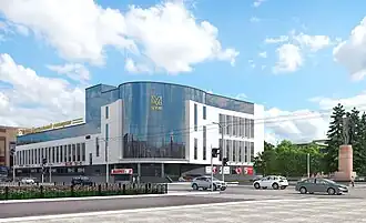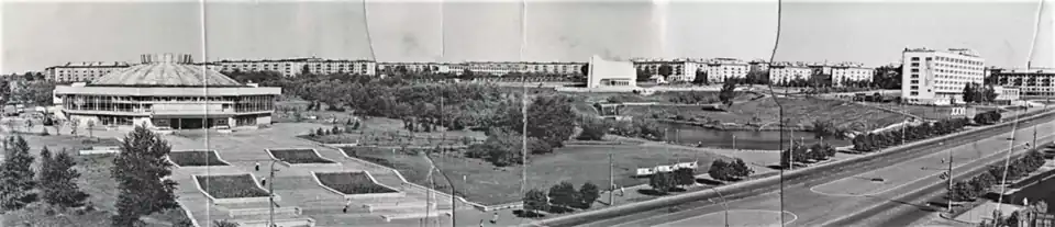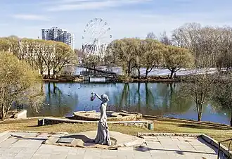 Along the southern part of Oktyabrsky Avenue, after the intersection with Vorovsky Street, the Central Park of the city is laid out. An artificial two-level pond has been created in the park, on top of which the Diorama building is located. Created according to the original project, it has the shape of a waving flag. A bas-relief was constructed on the upper part. The Diorama building houses the Museum of Revolutionary Events in Vyatka. The Kirov Circus and the Ferris Wheel are also located on the territory of the Central Park.[33]