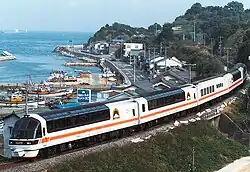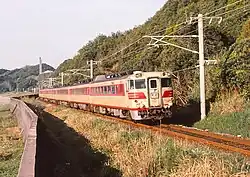 In the October 2, 1978 timetable revision, 36 surplus cars were transferred from Wakayama Locomotive Works, as Kuroshio trains were replaced by 381 series trains due to the electrification of Shingu Station on the Kise Main Line. Three Nanki return workings ran between Nagoya and Kii-Katsuura, which was a non-electrified section. The number of Hida services was increased by one to four.[12] In 1982, nine surplus cars were transferred from Mukōmachi, and five old cars were scrapped, and on November 15 of the same year, the timetable was revised to include six-car trains.[13]