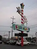 Kiddieland Amusement Park (stylized as "KiDDieLAND") was an amusement park located at the corner of North Avenue and First Avenue in Melrose Park, Illinois. It was home to several classic rides including the Little Dipper roller coaster, which opened in 1950. The park closed on September 27, 2009, and was demolished in 2010 to make way for a new Costco store. The sign for the amusement park was preserved and relocated to the parking lot next to the Melrose Park Public Library.[1]