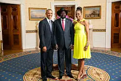 Salva Kiir Mayardit (born 13 September 1951),[3] commonly known as Salva Kiir, is a South Sudanese politician who has served as the President of South Sudan since its independence on 9 July 2011. Prior to independence, he was the President of the Government of Southern Sudan, as well as First Vice President of Sudan, from 2005 to 2011. He was named Commander-in-Chief of the Sudan People's Liberation Army (SPLA) in 2005, following the death of John Garang.[4]