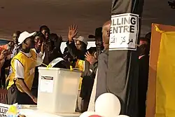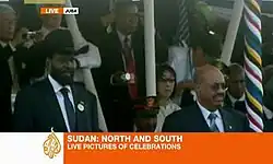 Kiir was re-elected with 93% of the vote in the 2010 South Sudanese election. Although the vote on both the national and sub-national level was criticized by democratic activists and international observers, the overwhelming margin of Kiir's re-election was noted by some media as being "Step One" in the process of secession.[11] Following his re-election, Omar al-Bashir reappointed Kiir as the First Vice President of Sudan in accordance with the interim constitution.[12]