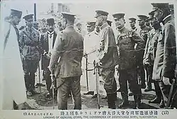In 1918, Japan joined the Allies in a joint intervention into the Russian Civil War in support of the White movement. Ōtani was appointed head of the Japanese expeditionary force with Yui Mitsue as the Chief of Staff. The Vladivostok Expeditionary Force was 60,000 men strong, comprising three divisions including the 12th Division and the 5th Division.[1] On 12 August, Japanese forces departed from Tokyo Station for Hiroshima, where they were to board ships destined for Vladivostok.[2] Following Vladivostok's occupation Otani became the formal commander of the Allied Siberian Intervention. In April 1920, Ōtani ordered the Allied troops to cut off eastern Transbaikal from the Bolshevik-controlled Far Eastern Republic thus creating the Chita holdup.[1]