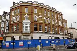 Just to the south of St. Augustine's on Carlton Vale stands the rebuilt Carlton Tavern, a pub built in 1920-21 for Charrington Brewery and thought to be the work of the architect Frank J Potter. The building, noted for its unaltered 1920s interiors and faience tile exterior, was being considered by Historic England for Grade II listing when it was unexpectedly demolished in March 2015 by the property developer CLTX Ltd to make way for a new block of flats.[37] The pub was subsequently rebuilt and re-opened following a community campaign and planning appeals.[38]