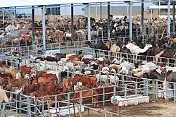 The Eid al-Adha is major annual festival of animal sacrifice in Islam. In Indonesia alone, for example, some 800,000 animals were sacrificed in 2014 by its Muslims on the festival, but the number can be a bit lower or higher depending on the economic conditions.[15] According to Lesley Hazleton, in Turkey about 2,500,000 sheep, cows and goats are sacrificed each year to observe the Islamic festival of animal sacrifice, with a part of the sacrificed animal given to the needy who didn't sacrifice an animal.[16] According to The Independent, nearly 10,000,000 animals are sacrificed in Pakistan every year on Eid.[17][18] Millions of animal are brought into the Middle East from north Africa and parts of Asia and slaughter every year on Eid al-Adha.[19]