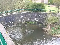 The Monk's or Mack's Well water runs into the Carmel beneath Kilmaurs Place. It is said that many years ago the laird tried to prevent the local people from using the well. It dried up until the lord changed his mind, but has run continuously ever since.[29] Stepping stones gave access from the other bank until a footbridge was built in 1824. The local pronunciation is close to 'Mank's well.'[30]