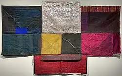 While in University, Kimsooja discovered her love for understanding the connection of aesthetics and human psychology which lead to the motive behind many of her works. Kimsooja references, from her first work to her most recent, how humans react to fabric, paint, sculpture and more, and how we experience the world as humans.[17] Kimsooja's "Sewing" series (1983–1992), her first work with fabric, brought forth an assemblage of systems of horizontals and verticals. Her use of fabric evoked bottari cloth, a traditional Korean wrapping cloth, typically made and used by women. She utilized fabric forming cruciform structures that synthesized an entangled and knotted vision of society and the world into a system of horizontals and verticals.[18] Like the Spatialist painter Lucio Fontana, who pierced the uni-colored canvas with a sharped-edged dagger, Kimsooja also made art that was no longer a screen of illusion but a three-dimensional structure as she weaved through the surface of the work, piercing holes into it.[18] These early sewn works, in turn, were inspired by the fabric and clothes that her grandmother had owned, while also fueled by Kimsooja's own interest in the traditional association between female labor and needlework in Korean culture along with the dynamics of civic and domestic power and the noticeable disconnect of public and private space. Growing up female in South Korea during the mid to late 1990s, Kimsooja created work that many Korean women could relate to through their collective attempts to remove themselves from the patriarchal social systems at play. With such media she intertwines tradition with contemporary art and feminism in South Korea. Kimsooja’s work forces spectators to separate the art from the artist and question humanity’s existence.[19]