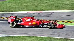 Räikkönen went on to take his 16th pole position in France, which was the 200th pole for Scuderia Ferrari.[36] Räikkönen dominated the race as he set the fastest lap and had a six-second lead until a bank exhaust failure some halfway through the race reduced his engine's power. He gave up the lead to his teammate Massa, but was far enough ahead of Toyota's Jarno Trulli, to secure second place and eight points.[37]