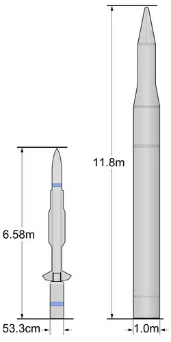 SM-3 (left) compared to Kinetic Energy Interceptor (right) | |