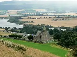 Looking down to Kinfauns Parish Church from near Deuchny Wood, with Fife in view beyond the River Tay