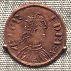 Alfred the Great silver offering penny, 871–899. Legend: AELFRED REX SAXONUM ('Alfred King of the Saxons')
