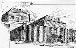 The King Street Gaol (commonly known as the Old Log Gaol) was Toronto's first jail, built in 1798 on the outskirts of York, Upper Canada. A log structure with 10 cells and a hanging yard, it was located on the south-east corner of King Street and Yonge Street, where the King Edward Hotel stands today. The jail quickly fell into disrepair, leading it to be abandoned. The east cells of the jail were completely rotten, the ceilings in the different rooms were insufficient, and the sheriff didn't feel safe when having to confine prisoners in cells or debtor's rooms.[1] It was replaced by a brick jail (further east between King Street and Court Street) in 1824.[2][3][4]
