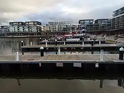 The most recent development is the Kingston Foreshores development in which large numbers of high-value apartments are being built along the foreshores of Lake Burley Griffin. The area had previously been used for industrial purposes and is located between the Canberra railway station and the Kingston Powerhouse. These new developments and the rise of a café society have reformed Kingston as one of the most exclusive suburbs in Canberra. The Kingston Foreshores are zoned for four-story units, but six-storey units are permitted under some conditions in some areas.[15]