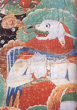 The jinnalaluo (also called kimnaras, feiren, and yeishen) were divine creatures with human bodies and animal's heads that were featured in Buddhist mythology.[7] These beings resemble human bodies and have the heads of animals, most notably horses or birds.[7]