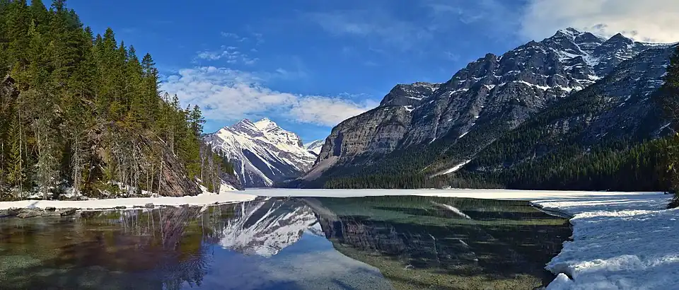 Kinney Lake is a lake located in Mount Robson Provincial Park of British Columbia, Canada.[1] The lake can be reached by following the Berg Lake Trail for 4.2 kilometres (2.6 mi). The lake is an expansion of the Robson River (a tributary of the upper Fraser River) and is located about halfway between the river's source and its mouth. It was named by Arthur Philemon Coleman, Canadian geologist, who explored the region with his friend, George Kinney, who spotted the lake first.[2]