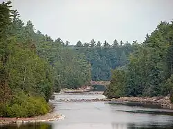 Kipawa River during low water level, as seen from the Laniel Dam | |