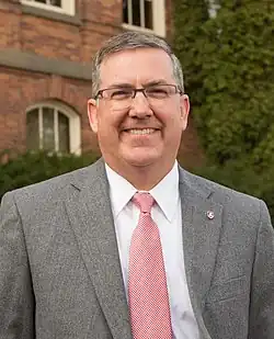 On February 11, 2009, the Kansas Board of Regents announced that Schulz was selected as the thirteenth president of Kansas State University.[4] On March 25, 2016, the Washington State University Board of Regents announced that Schulz was selected as the 11th president of Washington State University, which he began in June 2016.[5] In 2021, his roles related to the Pullman campus were delegated to a new chancellor, Elizabeth S. Chilton, and his role transitioned into setting the strategic vision and direction for the entire WSU system.[6][7] Schulz announced his plan to retire at the end of the 2024-25 school year, amidst a declining academic reputation and rising debt of the university.[8]