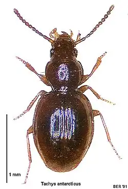 | Tachys antarcticus, numera Kiwitachys antarcticus, fotografi av Birgit E. Rhode, Landcare Research New Zealand Ltd. | |