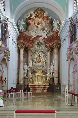 During 1764 – 1765, Johann Baptist Wenzel Bergl painted numerous frescoes in the basilica.