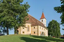 The Church of Kleinsöding, often simply called Sebastianikirche, is a Roman Catholic filial and pilgrimage church in the Austrian village of Kleinsöding in western Styria, which belongs to the municipality of Söding-Sankt Johann. The church, consecrated in honor of St. Sebastian, belongs to the pastoral area of Voitsberg in the diocese of Graz-Seckau and is subordinate to the parish of Mooskirchen. As a pilgrimage church, it only plays a local role for Kleinsöding and the surrounding villages.