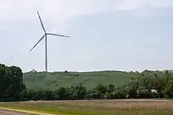 The Windmühlenberg (former landfill), in front of it is the Knielingen horse racing track
