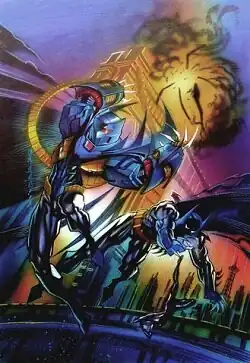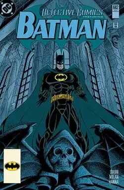 The initial idea for the character of Azrael stemmed from a two-part story idea pitched by Detective Comics writer Peter Milligan circa 1991, as he was leaving that position.[2][3] After line editor Dennis O'Neil decided to expand it into a larger epic, he and the Batman line writers Chuck Dixon, Doug Moench and Alan Grant convened an authors' summit over a long weekend to flesh out the details and story points. At the same time, the Superman team was planning for a similar character-altering storyline, and neither they nor the Batman group initially had any knowledge of each other's plans.[3] Dennis O'Neil denies the Knightfall storyline was in any way inspired by the Death of Superman storyline and states that it was already in development by as much as three years, saying that if the Batman staff had known, the storyline would likely have been pushed down a year.[4]