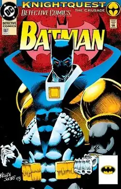 "Knightfall" is a 1993–1994 Batman story arc published by DC Comics. It consists of a trilogy of storylines that ran from 1993 to 1994, consisting of "Knightfall", "Knightquest", and "KnightsEnd".[note 1]