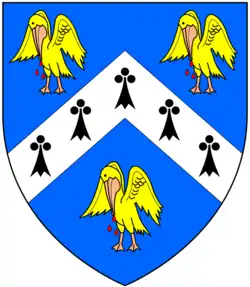 - ^ Arms of Sir John Shapcote, as depicted in stained glass, Bampton church Sable, 3 dovecots argent; see also Shapcott family website. These arms can also be seen on the memorial tablet in Knowstone Church erected by Elizabeth to her grandson Philip Shapcote