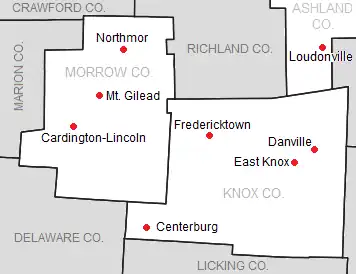 The Knox Morrow Athletic Conference is an Ohio High School Athletic Association (OHSAA) league that began competition in the 2017-18 school year.[1] Its members are located in the Ohio counties of Knox, Morrow, and Ashland