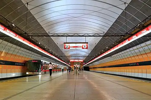 Kobylisy (Czech pronunciation: [ˈkobɪlɪsɪ]) is a Prague Metro station on Line C, located in the district of Kobylisy. The station was opened on 26 June 2004 as part of the Line C extension from Nádraží Holešovice to Ládví.[1]