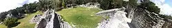 The road approaches the site from the north and leads into an enormous central plaza ringed by pyramids and temple platforms. To the north there is a massive, raised acropolis, or citadel, with a palace complex around a courtyard to the north-west. Further east there is the Temple of the Masks, built in honor of the sungod. Originally there were eight carved masks flanking its central staircase; only five remain, three having been looted.