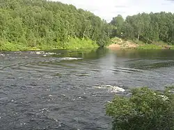 The Kola (Russian: Кола) is a river on the Kola Peninsula in Murmansk Oblast, Russia. It is 83 kilometres (52 mi) long, and has a drainage basin of 3,850 square kilometres (1,490 sq mi).[1] The river flows out of Lake Kolozero north into the Kola Bay of the Barents Sea, some 10 km south of Murmansk. The neighbouring river Tuloma has its mouth just one kilometer to the west. The average discharge is 40 m3/s, but there are large seasonal variations. Its largest tributaries is Kitza and Orlovka from the right, and Tukhta and Medvezhya from the left. The only town on the river is also called Kola.