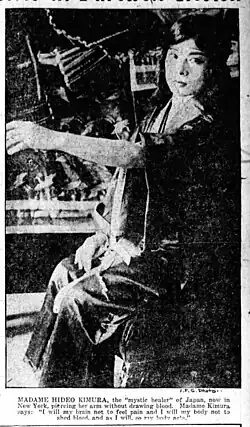 - ^ "Madame Hideo Kimura" Evening Public Ledger (August 1, 1919): 22. via Newspapers.com