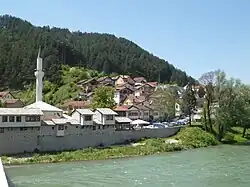 The town, part of the Kingdom of Bosnia, was conquered by the Ottoman Empire, of which the lasting feature for the town (apart from the many mosques and bringing of Islamic faith) is the Ottoman-inspired bridge Stara Ćuprija which features in the town's coat of arms, and later into the Austro-Hungarian Empire.