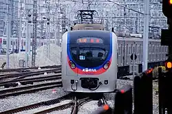 ![]() Class 321000 train 321-16 arriving at Digital Media City station | |