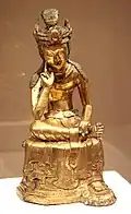 Semi-seated Bodhisattva Maitreya, Baekje, mid-7th century. Gilt bronze. Metropolitan Museum of Art. -