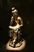 Pensive Bodhisattva Maitreya, Baekje, late 6th century. Gilt bronze, H. 5.5 cm; L.: 5.5 -