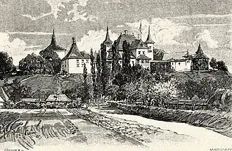 ![]() Kornis Castle, vintage engraving | |