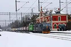 Kornsjø is a village in Enningdalen in Halden, Norway on the border to Sweden. The village has 250 residents (2001). At Kornsjø is the border crossing for the railway lines the Østfold Line (Norway) and the Norway/Vänern Line (Sweden). Previously change of crew was performed at Kornsjø Station, but this has since been closed.