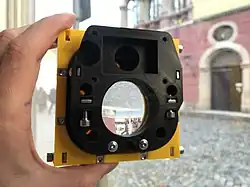 Koruza is a Slovenian open source and open hardware project providing equipment for low-cost free-space wireless optical connections. One can use 3D printing to create their own equipment. It is based on use of existing SFP optical modules which brings the costs of manufacturing down. Because it uses infrared light it is an alternative to Wi-Fi and does not have issues with spectrum congestion and radio interference.[1] It is available in 1 Gbit/s and 10 Gbit/s forms. Connection can be established at up to 100 m.