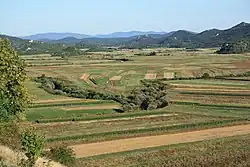 Kosinj, also known as Kosinj Valley, is a hilly region in Perušić municipality, Lika-Senj County, Croatia. It contains three villages: Gornji Kosinj and Donji Kosinj, which are connected by the Kosinj Bridge on the Lika river, and Bakovac Kosinjski. The population of the villages is 752 according to the 2011 census.