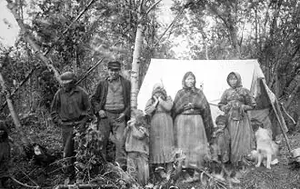 Koyukon people on left bank of Koyukuk River, 195 miles above its mouth, September 6, 1898.