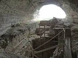 Kozarnika or Peshtera Kozarnika (Bulgarian: Пещера Козарника, lit. 'The Goat Shed') is a cave in northwestern Bulgaria that was used as a hunters’ shelter as early as the Lower Paleolithic (1.6-1.4 million BP).[1] It marks an older route of early human migration from Africa to Europe via the Balkans, prior to the other currently suggested route - the one across Gibraltar. The cave probably keeps the earliest evidence of human symbolic behaviour and the earliest European Gravette flint assemblages came to light here.[2]