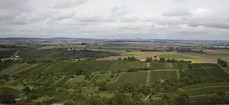 The Kraichgau (German: [ˈkʁaɪçɡaʊ] ⓘ) is a hilly region in Baden-Württemberg, southwestern Germany.[1] It is bordered by the Odenwald and the Neckar to the North, the Black Forest to the South, and the Upper Rhine Plain to the West. To the east, its boundary is considered to be the Stromberg and the Heuchelberg.