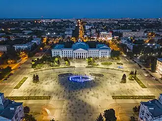 Kramatorsk (Ukrainian: Краматорськ, pronounced [krɐmɐˈtɔrʲsʲk] ⓘ; Russian: Краматорск) is a city and the administrative centre of Kramatorsk Raion in Donetsk Oblast of the Donbas region of eastern Ukraine. Prior to 2020, Kramatorsk was a city of oblast significance. Since October 2014, Kramatorsk has been the provisional seat of Donetsk Oblast, following the events surrounding the war in Donbas.[2] Its population is 147,145 (2022 estimate).[3] It is an important industrial and mechanical engineering center in Ukraine. Kramatorsk is on the banks of the Kazennyi Torets, a right tributary of the Siverskyi Donets.