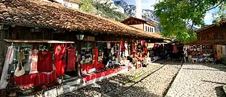 The museums of Krujë include the Skanderbeg Museum and the national ethnographic museum. The Skanderbeg Museum, founded in 1982, was built in the environs of the Krujë Castle. Its collection includes mostly 15th century artefacts related to the Albanian-Ottoman wars, during which the castle was besieged four times by the Ottoman army.[37] The national ethnographic museum of Krujë was founded in 1989 and is located in a 15–6-room villa of the Toptani family built in 1764. The main exhibits of the museum are objects of artisanship, whose age varies from 60 to 500 years.[37]