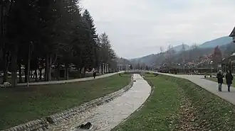 During World War II, in the village of Bela Crkva, partisan Žikica Jovanović Španac killed two gendarmes on 7 July 1941, which would become the official date of celebration of the people's uprising against occupiers in Serbia during communist rule.[6] On 26 September 1941, a meeting of partisans' main headquarters, presided by Josip Broz Tito, was held in the nearby village of Stolice.[7] A monument and memorial park were built after the war, celebrating the event. As the town was one of the centers of the Republic of Užice, it was burned to the ground by German occupiers in late 1941, with only a few buildings surviving.[5]