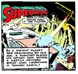 Krypton is a fictional planet appearing in American comic books published by DC Comics, most commonly appearing or mentioned in stories starring the superhero Superman as the world from where he came. The planet was created by Jerry Siegel and Joe Shuster, and was named after the chemical element krypton. It was first mentioned in Action Comics #1 (June 1938) and made its first appearance in Superman #1 (1939). Krypton is destroyed immediately after Superman, as the baby Kal-El, is sent from the planet in a spacecraft by his parents, although the exact details of its destruction have varied over publication history.