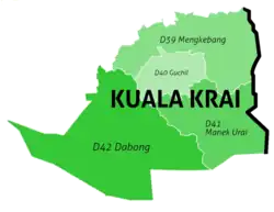 According to the federal gazette issued on 18 July 2023, the Kuala Krai constituency is divided into 43 polling districts.[4]