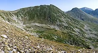 Kuklite (Bulgarian: Куклите [ˈkuklitɛ]) is a 2,686 m-high peak in the Pirin mountain range, south-western Bulgaria. It is located in the northern part of Pirin on the Kamenitsa secondary ridge between the summits of Yalovarnika (2,763 m), Zabat (2,688 m) to the north-east and Golena (2,633 m) to the south.[1] It is built up of granite. The western and north-western slopes of Kuklite are very steep and are open to the pebbly Begovitsa cirque; the foothills contain accumulations of moraines, densely covered in mountain pine (Pinus mugo) at places. The eastern and south-eastern slopes facing the Bashmandra cirque are grassy and oblique. The Begovishko glacial lake is situated at the northern foothills of the summit.[1]